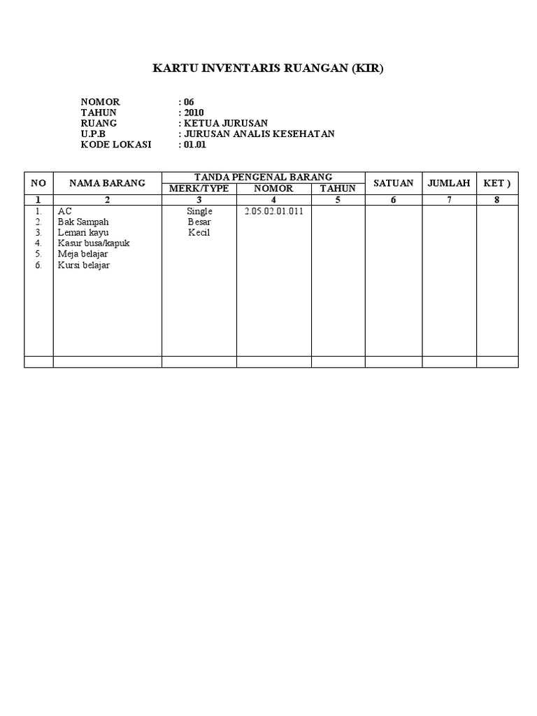 Hal tersebut dimaksudkan untuk mengetahui sarana prasana yang digunakan di tempat tersebut selama beberapa waktu tertentu. Kode barang kib kartu inventaris barang sesuai nomo 17 tahun 2007 keputusan menteri dalam negeri dan sampai sekarang masih berlaku. Kartu inventaris barang, contoh buku inventaris barang/perlengkapan sekolah paud (tk kb tpa sps). Kartu pemeliharaan perawatan barang inventaris sma 10 semarang recommended contoh kartu kendali surat masuk irawan iwan. 100 1 100 found this document useful 1 vote 7k views 1 page.